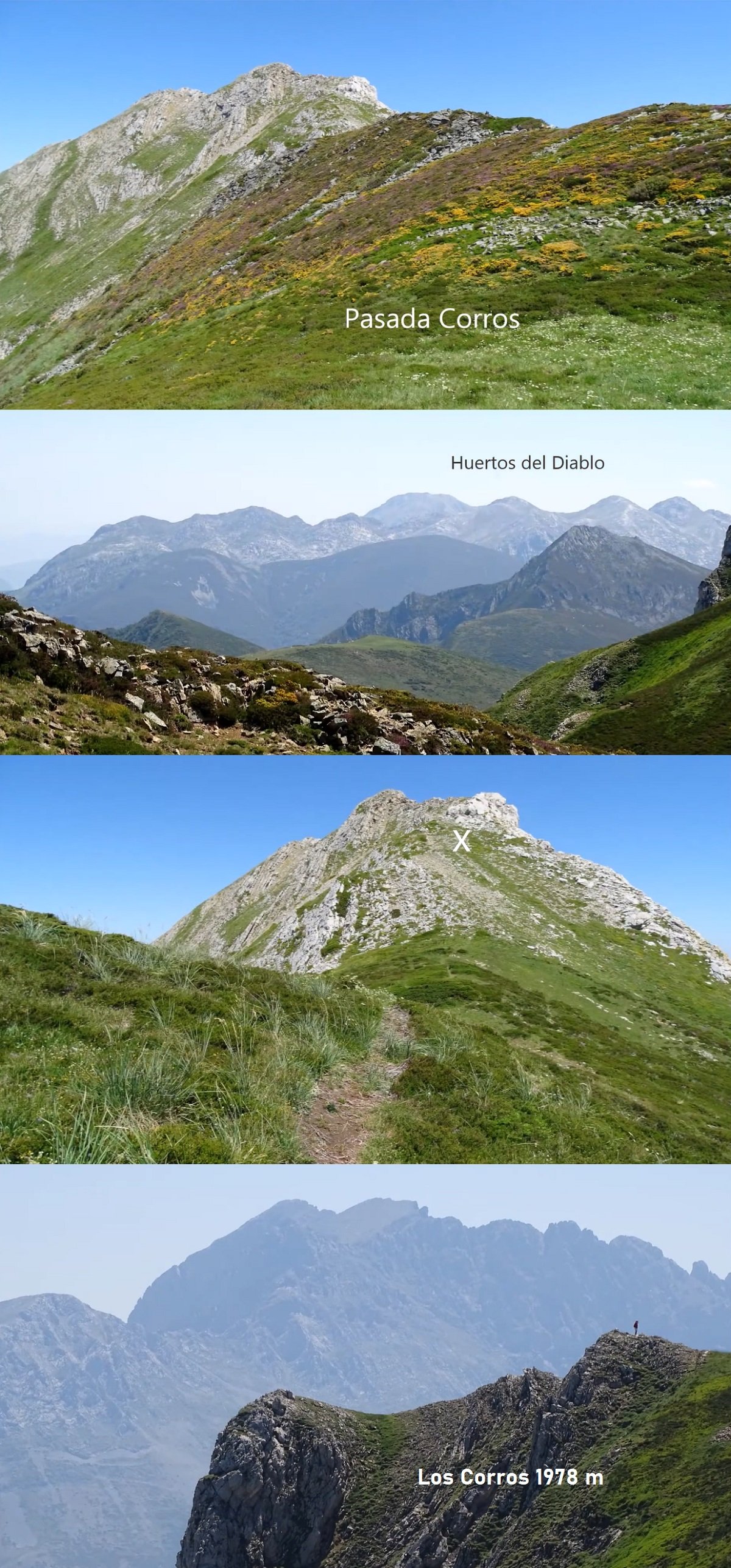 Se llega, tras la zigzageante cuestecita, al collado/pasada Corros (1927 m) y desde allí aparecen las vistas de la larga y amplia Braña de la Mesa, por donde pasa el célebre Camín Real de la Mesa; esta zona separa, hacia el este, Somiedo del concejo vecino de Teverga. Fácilmente desde allí abajo se puede bajar a la braña tevergana de las Navariegas, que dicen que es la más antigua de Asturias. Allí dormimos una noche Alfonso y yo.